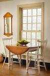 The Amish Round Hamel Dropleaf Extension Dining Room Table wears the look you need when you need it. Drop leaf style on this solid wood table folds down to save space. Featuring turned legs and solid wood, this drop leaf table adds a classic look to dining room or kitchen.