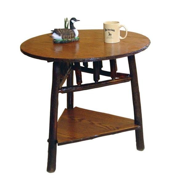 Amish Handcrafted Rustic Hickory Twig 27" Round End Table with Shelf