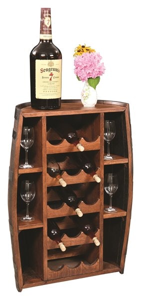 You can really add a warm welcoming look with the Amish Rustic Half Barrel Wine Bottle Holder. This unique wine storage is made using a barrel that craftsmen turn into a wine storage center. Finished with Michael's cherry stain and offering room for 15 wine bottles, this half barrel is sure to attract attention.