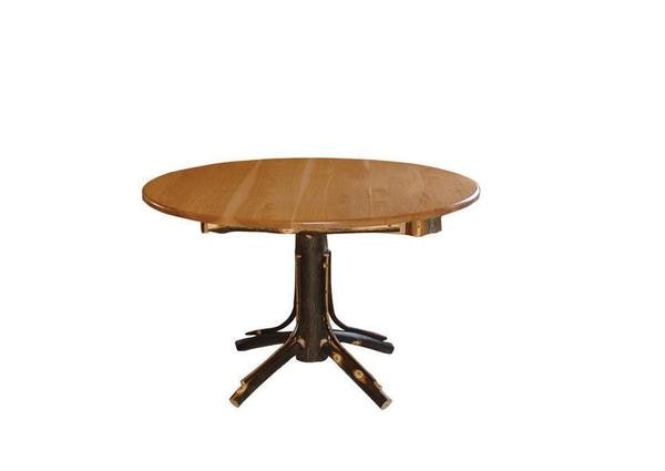 Amish Handcrafted Rustic Hickory Single Pedestal Dining Table