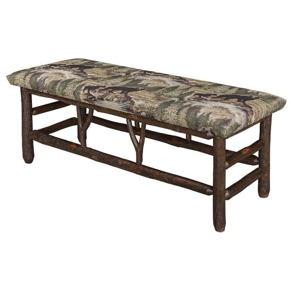 Amish Rustic Hickory Twig Wood Upholstered Hall Bench