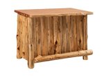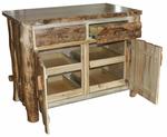 The Amish Rustic Log Kitchen Island adds storage and work space. Picture family in the kitchen stopping by as you chop, dice and mix at this kitchen counter island. It includes two drawers for utensils and two lower cabinets that house four roll-out trays to store mixers, blenders, crock pots and more.