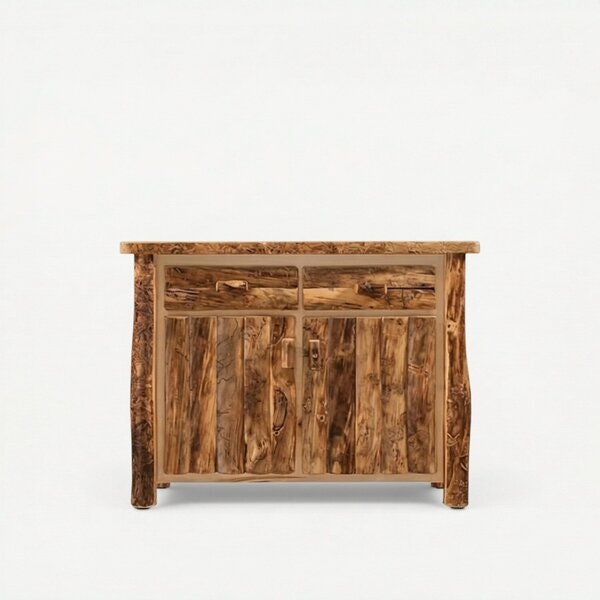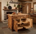The Amish Rustic Log Kitchen Island adds storage and work space. Picture family in the kitchen stopping by as you chop, dice and mix at this kitchen counter island. It includes two drawers for utensils and two lower cabinets that house four roll-out trays to store mixers, blenders, crock pots and more.