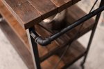 Perfect for serving or storing your entertainment essentials, the Amish Rustic Reclaimed Wood Rolling Cart is the ideal fusion of rustic charm and industrial strength. Sure to make an impression, this piece is made from reclaimed oak and poplar woods. The frame comes in a textured matte black powder coat to provide a beautiful contrast to the warmth of the reclaimed wood. This entire piece is handcrafted by skilled Amish wood and metal workers. The two legs have hard plastic levelers to adjust to any height as you move this sturdy cart with hand made wheels from location to location.