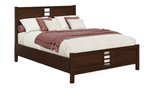At the center of the set is the bed, designed with a striking yet understated presence. Its headboard features a sleek, rectangular silhouette accented by subtle geometric cutouts that add visual interest without overwhelming the room. The low-profile footboard keeps the look light and open, making it ideal for smaller spaces or those craving a modern, uncluttered vibe. Every detail, from the straight, sturdy legs to the smooth edges, reflects a commitment to simplicity and function.