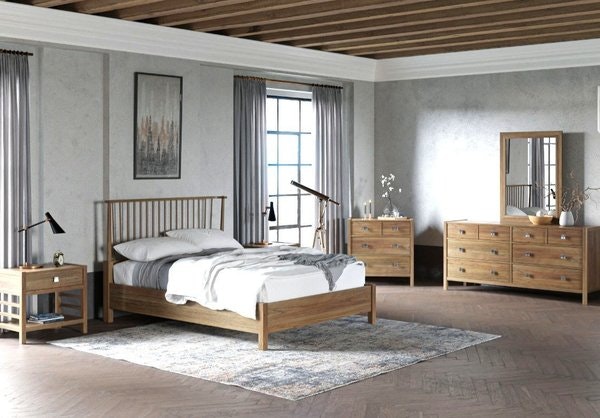 Customize the set to your space with your preferred bed size, wood, and finish, or add a matching mirror above the dresser for a polished touch. It’s more than just furniture; it’s a foundation for a bedroom that feels like a retreat—where style meets substance, and every piece works as hard as you do to make life a little more organized, and a little more beautiful.