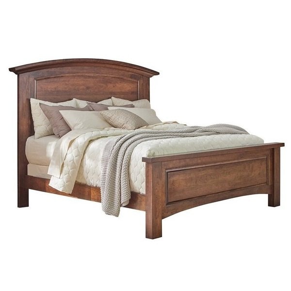 The Amish Saige Arched Panel Bed brings a sense of timeless comfort to your bedroom, blending classic design with thoughtful details that make it more than just a place to rest—it’s the heart of your personal retreat. Its gently arched headboard serves as a graceful focal point, with a smooth, curved profile that softens the room while adding subtle elegance. The raised panel at the center of the headboard highlights the natural grain of the wood, turning each piece into a unique display of nature’s artistry, while the clean, structured edges keep the look grounded and refined.