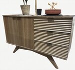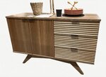 Amish-Sandusky Mid Century Modern Sideboard Cabinet with Fluted Doors & Drawers