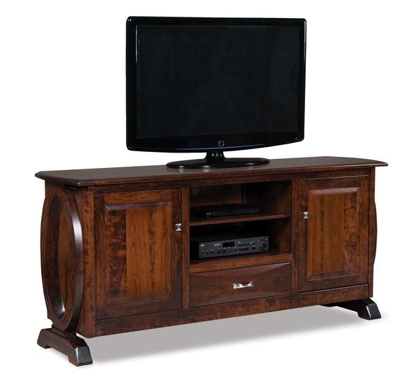Our Amish Stockton TV Stand has 2 doors and one drawer. It features: