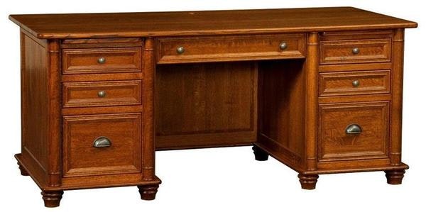 The Amish Savile Executive Desk gets right to work for you with plenty of features built into its solid wood design. This executive desk has deep drawers with lots of space to store and organize. Handcrafted from the highest-quality woods, it will sure to make an impression in an executive office or home office.
