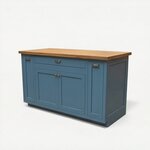 You can customize this piece so the interior keeps the natural finish and has a different stain on the outside. We can help you find the right design for your kitchen, which is available in various wood types and stains. Contact one of our furniture specialists today to help you design the kitchen island of your dreams!