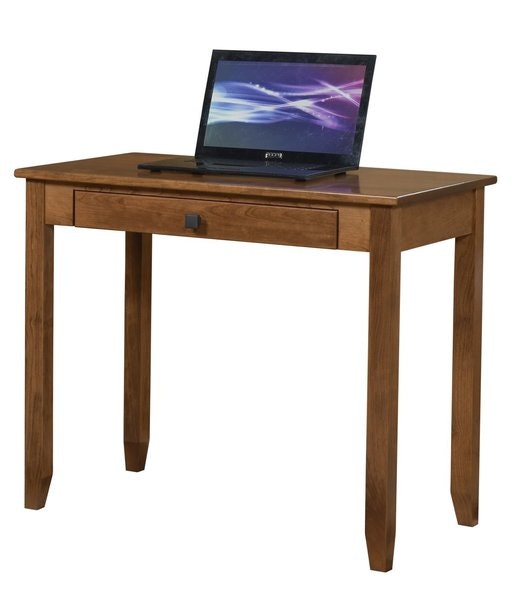 The Rustic Cherry Writing Desk is a simple, yet effective design that provides a perfect writing surface for your workspace needs. This small writing desk features a single drawer for convenient storage, and its timeless Shaker style includes slightly tapered feet and clean squared corners, making it an ideal addition to any Shaker-style home or office.