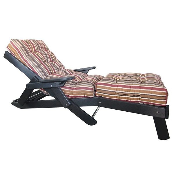 Kick up your feet on this folding poly chaise lounger with foot rest. This Amish outdoor furniture is built from environmentally friendly poly lumber with extra thick cushions. When not in use, fold up this chaise for easy storage. Create your dream outdoor furniture by choosing your poly color and upholstery option and the option of pillows.
