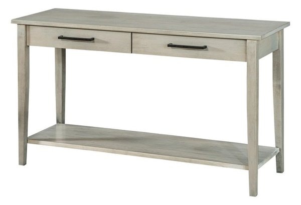 Set this table behind your sofa for extra storage and as a nice adornment in your living room. This simple sofa table features two drawers and a convenient shelf underneath. The two drawers provide storage for anything you need, such as coasters, pens, papers, or anything you want tucked away. The shelf underneath is ideal for storing magazines, blankets, or displaying decorative items; it adds storage and charm to your home. This simple sofa table is handcrafted in Indiana and made entirely of solid wood.