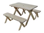 Everyone looks for outdoor furniture that will work hard for a great price, and here you've found it with this outdoor pine furniture. This pine table and benches are available in 4', 5', 6', and 8' lengths.