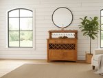 The ultimate entertaining addition, our handcrafted wooden Alderman buffet cabinet with wine storage offers up everything you'll need to keep your get-togethers running smoothly. This 49" wide buffet features plenty of space on the deck to display hors devours and snacks, while the large top backsplash shelf features built-in stemware holders offer easy access when preparing beverages. Below, two drawers are mounted on soft-close glides, easily opening to access any bar accessory you'll need.