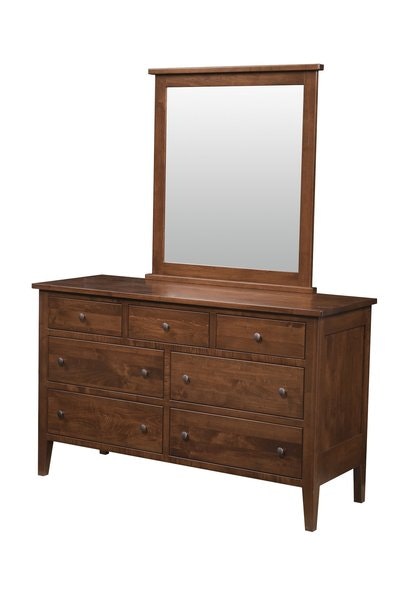 Add timeless charm and functional storage to your bedroom with the Amish Chelsea 59" Dresser with Optional Mirror. With seven spacious drawers, this dresser keeps everything from blankets and pajamas to clothing and accessories beautifully organized. Its subtle Shaker-style influence brings a touch of classic elegance, making it a versatile piece that complements nearly any bedroom décor.