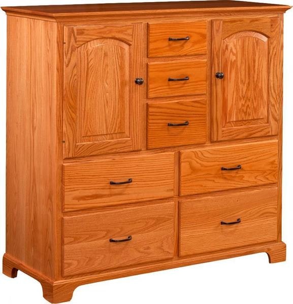 This beautiful chest also features two cabinets with arched, raised-panel doors, perfect for storing larger items, and a smooth top surface ideal for displaying décor, photos, or keepsakes. Tuck away blankets, clothing, and accessories in a piece that combines function with classic Amish style.