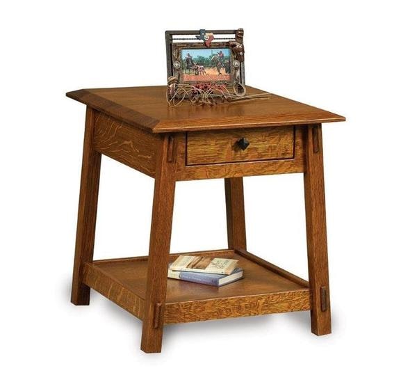 This Mission end table is just the right size at 21" wide and 25" deep. Place this end table beside your couch for the perfect spot to rest your wine in the evening or coffee in the morning. Order a pair online, over the phone, or at one of our brick-and-mortar Amish furniture stores.