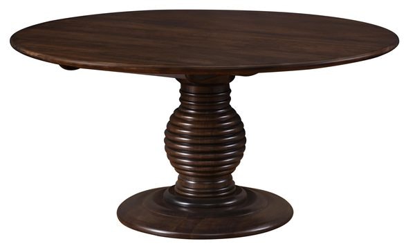 Our Amish Spooled Round Single Pedestal Extension Dining Table epitomizes sturdiness. With just a glance, the stability is apparent. The strategic round design of this table allows for flexibility in positioning chairs around the exterior to accommodate multiple seating positions. The leaf in this Table takes this a step further, and aids in entertaining even more for when Game Night comes around!