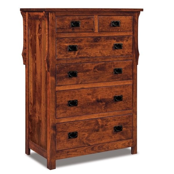 The Amish Stick Mission Six Drawer Chest of Drawers is authentic solid wood storage for bedroom. Styled with simple and strong mission characteristics, this chest of drawers features slender mission slats on the sides and a squared look that's attractive and versatile.