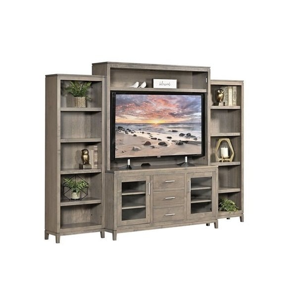 Amish Stonehill Modern Entertainment Center with Side Bookcases