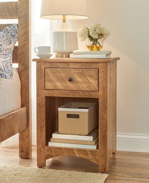 Amish Nash Solid Wood Minimalist 1-Drawer Open Nightstand