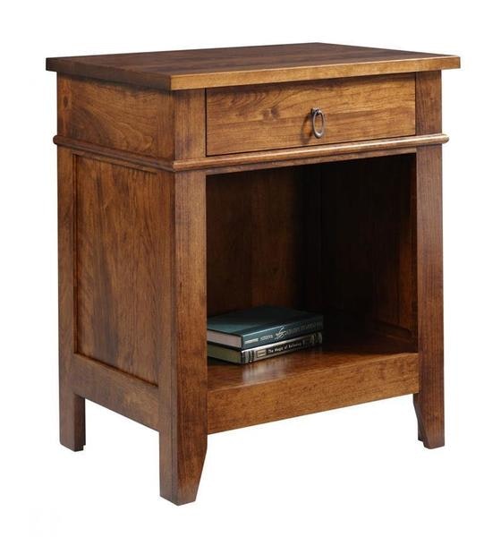 A gorgeous addition to your bedroom suite, the Amish Arizona One Drawer Night stand offers solid wood storage bedside. These nightstands are built by hand by skilled Amish craftsmen. The Arizona is made in Ohio, and you select the wood species and finish that suit your bedroom best.