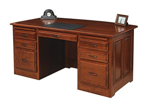 Exhibiting an impressive focal point for your home or business office, the Amish Tuscan Classic Executive Desk displays rich, solid wood panels and a smooth, spacious desktop. Versatility and strength come standard with this desk, in the form of dovetailed drawers, optional soft-close sliders, optional custom grommets and standard 100% solid, premium hardwood.