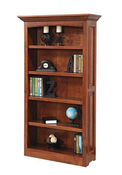 With raised panels and beautiful molding, this Amish bookcase displays the beauty of your wood choice with charm. Select from six different wood types for this bookcase. This rich piece is right at home in your home office or library with row upon row of your favorite novels displayed.