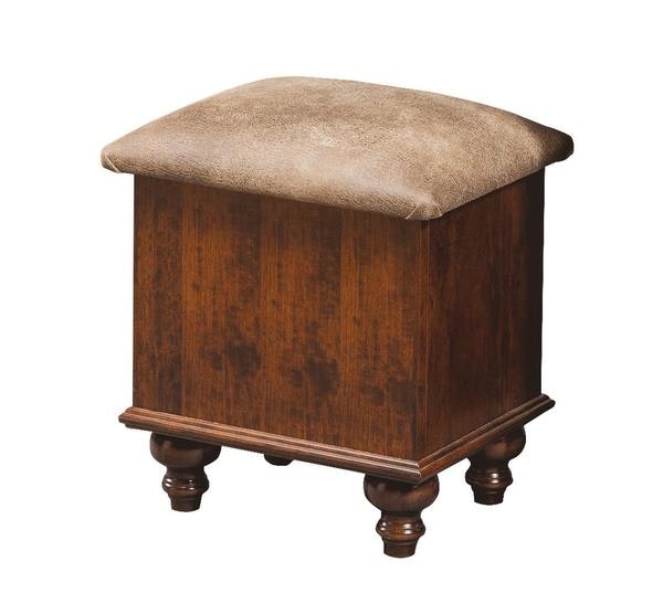 Keep essential items close at hand with the handy flip-top plush seating on this vanity stool with storage. It features solid walls and four beautifully turned bun feet for added elegance.