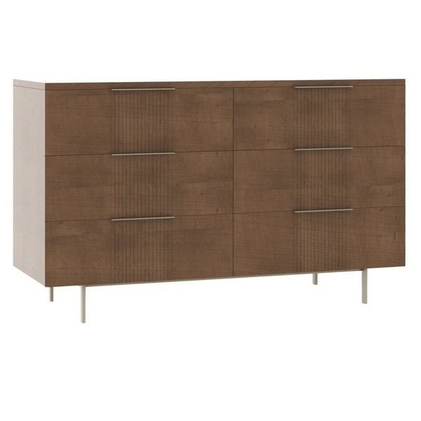 A standout design feature is the vertical wood slats that run along the front of each drawer, adding subtle texture and visual interest without overwhelming the dresser’s minimalist aesthetic. These details, paired with slim metal legs, give the piece a light, airy feel—perfect for keeping your bedroom from feeling heavy or cramped.