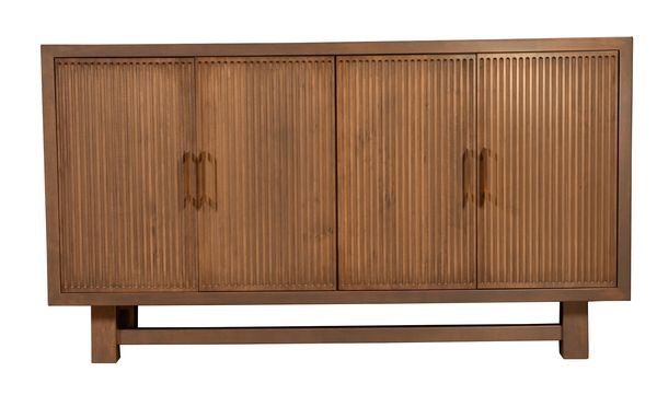 Amish Urban Vineyard Modern Dining Credenza Sideboard with Fluted Doors is 100% authentic Amish construction. It is 68" wide with four doors with an adjustable shelf. Choose between cherry and brown maple wood.