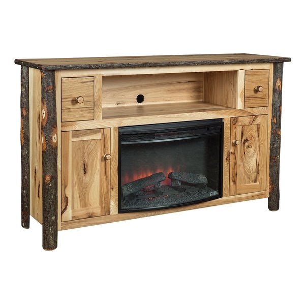 Amish Vail Rustic Hickory Log Entertainment Center with Electric Fireplace