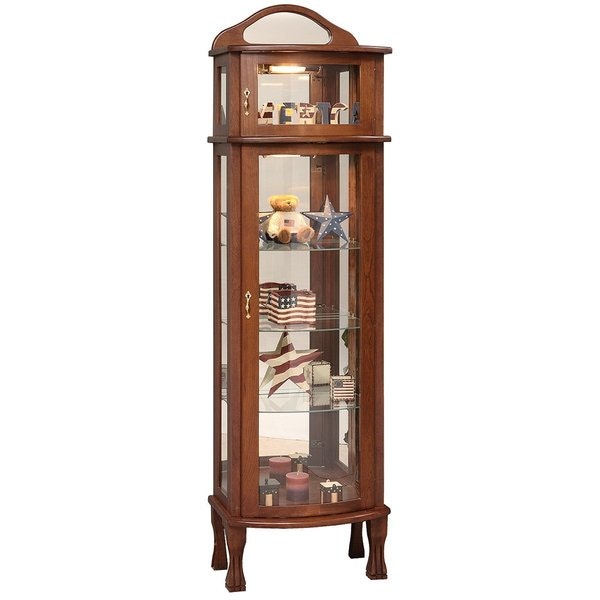 The Bonnet Top offers a traditional, elegant look, with a mirrored back and curved glass door for the bottom case. The glass shelves have plate grooves to make for an easy, secure display.