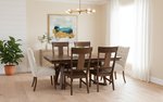 Gather around the heart of your home — the place where hands are held, laughter is shared, and prayers are spoken before every meal. The Amish All-American Dean Modern Trestle Dining Table isn’t just furniture; it’s where memories are made. Picture your family gathered around it for Sunday dinners, kids doing homework while cookies bake in the oven, or friends lingering long after dessert. This table is built for those moments — timeless, sturdy, and full of heart. With its classic trestle base and clean, modern lines, the Dean Dining Table seamlessly combines traditional craftsmanship with contemporary design. Its versatile look fits effortlessly in both cozy farmhouse dining rooms and modern open-concept homes. Every inch is handcrafted by skilled Amish woodworkers who pour decades of tradition and care into every joint and curve, ensuring your table will stand strong for generations to come. You can customize your table to fit your family and your space — choose from several widths and lengths, extending up to 72". Need room for more guests? The Dean Table can expand with up to four 12" leaves, featuring smooth equalizer slides for easy setup when company arrives. Crafted from your choice of premium American hardwoods — Quarter Sawn White Oak, Cherry, Walnut, and more — each table showcases the rich grain and warmth that only genuine solid wood can provide. From quiet weekday breakfasts to festive holiday feasts, this dining table invites everyone to come together, share stories, and give thanks. Built by hand. Built to last and built for life’s moments, big and small. Make your home the gathering place. Order your Amish-made Modern Trestle Dining Table today, and start making memories around your new family heirloom.Discover why American-made furniture is worth the investment.