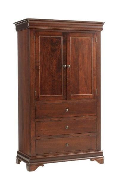 Your new Romeo Armoire will be crafted from your choice of solid hardwood and finished to perfection with a stain and conversion varnish that will ensure a family heirloom with a timeless style for your and your family to enjoy for generations.