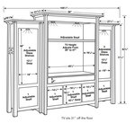 This Mission-style entertainment center wall unit features solid wooden inset doors on the base with soft-close hinges. The center door can be upgraded with an optional glass and mullion design. Each wooden door conceals an adjustable shelf, while the bookcase's glass doors reveal three adjustable shelves. Additionally, each side cabinet includes a convenient cord hole.