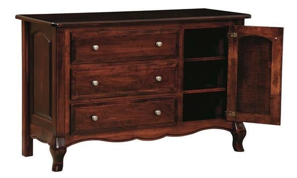The Amish West Estates Three Drawer Dresser with Door is elegant and graceful, bringing a refined and gentle look to the playroom or nursery. This convertible dresser and changing table duo provides the long lasting and reliable performance of fine furniture, looking great all the while. A touch of rustic adds a relaxed feel, while the body of this dresser offers three spacious drawers, a storage cabinet, smooth dresser top and beautifully curved front legs.