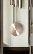 Complete with brushed nickel lyre pendulum & weight shells, an automatic night shutoff feature, nickel knobs & hinges, and detailed metal coated carvings, this stunning grandfather clock will be the centerpiece of any room in your house.