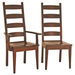 The set includes two side chairs and two arm chairs, each designed with a ladder back that balances support and timeless style. The wood seats invite lingering conversations, their natural warmth making every guest feel welcome. Handcrafted by Amish artisans in Ohio, each piece is built from solid hardwood, ensuring it stands up to the rhythms of family life—spills, laughter, and the steady flow of daily moments.
