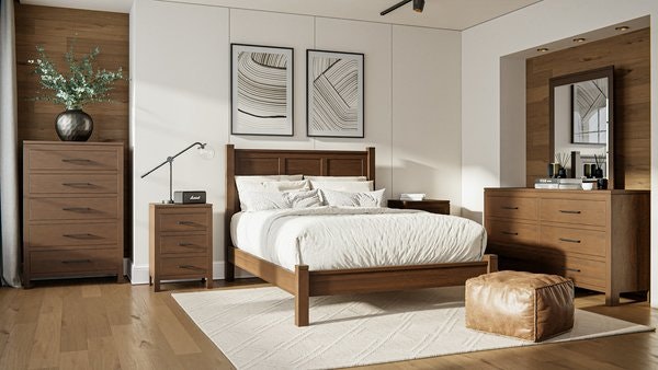 100% Amish craftsmanship is used in the entire build of this bedroom set. All case pieces feature dovetailed drawers affixed on full extension ball bearing side mount drawer slides for durability and easy access to your clothes.