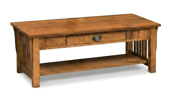 Create a warm and welcoming living room with the Amish Handcrafted Winthrop Mission Rectangular Coffee Table, a piece designed to bring people together. Rich with classic Mission details, this solid wood coffee table blends beautifully with both traditional and contemporary décor. From its gentle, slender corbels to its iconic Mission slatwork surrounding the base, every inch reflects the care and craftsmanship of skilled Amish woodworkers. The spacious lower shelf adds everyday practicality—perfect for keeping magazines, remotes, books, and games neatly accessible.