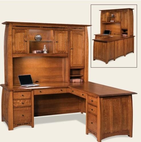 Amish Wood Grove Mission L Desk with Optional Hutch or Power Lift Top