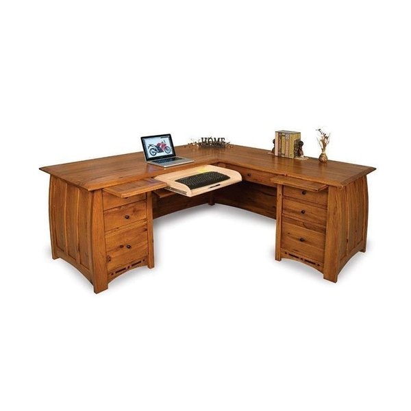 Work in luxury at the handcrafted Amish Wood Grove L Desk. There's lots of space to spread out your work, plenty of storage, features to support and solid wood that shines with strength and color from every angle. This wood desk is crafted by hand and makes a stunning centerpiece for a home office or business.