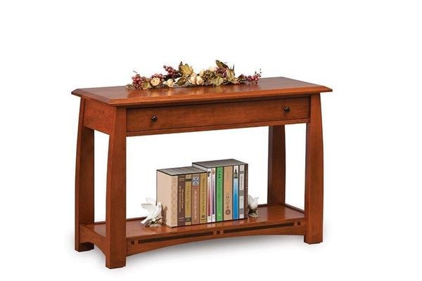 Bring the beauty of Amish furniture to your living room with our heirloom quality Wood Grove Mission Open Sofa Table with Drawer. You are sure to be able to tell that this sofa table comes to your home straight from the hands of our expert Amish woodworkers. Proudly American made to your exact specifications.