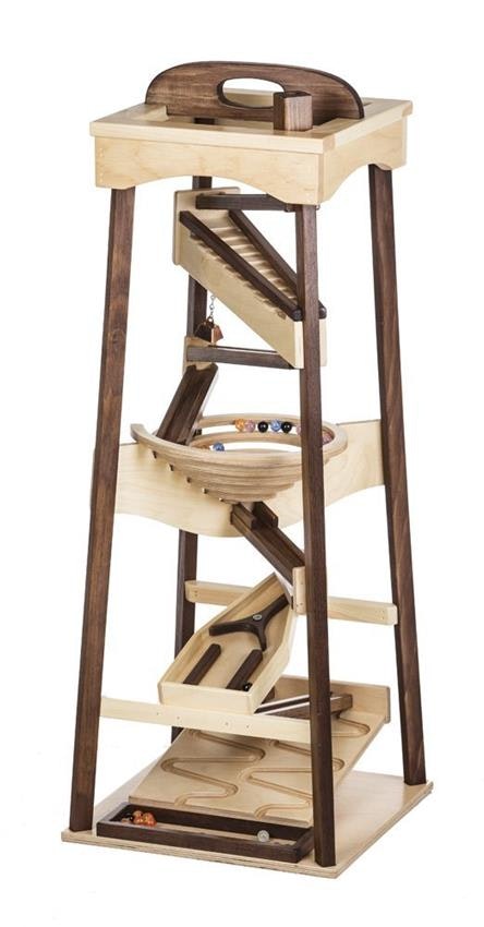 Children will be enthralled for hours by the twists and turns of this Marble Pyramid STEM toy! Engage your child's curiosity and learn about pulley systems, gravity, potential and kinetic energy, and velocity! This pyramid can come unfinished or with natural maple and walnut wood.
