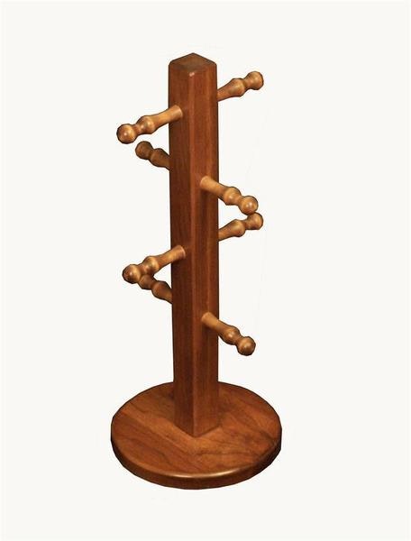 Handcrafted by the Amish in the USA, this mug tree comes in Oak or Chery wood and will hold up to eight mugs.