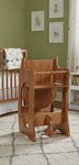 This fine woodwork provides a high chair, a toy rocker, and a miniature desk to meet your current needs.