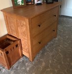 You can customize your new file cabinet by choosing the wood, stain and hardware you like best. It's shown here in rustic quarter sawn white oak wood with almond stain. Have it built as you see it here, or explore other wood types and stain colors. We make customizing your new wood furniture easy by sending you samples to work with at home.